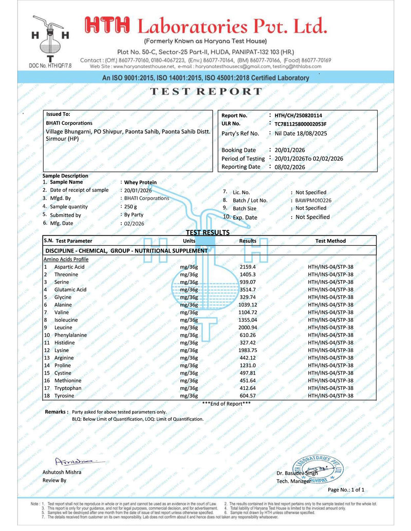 Authenticity Certificates (Whey Protein)