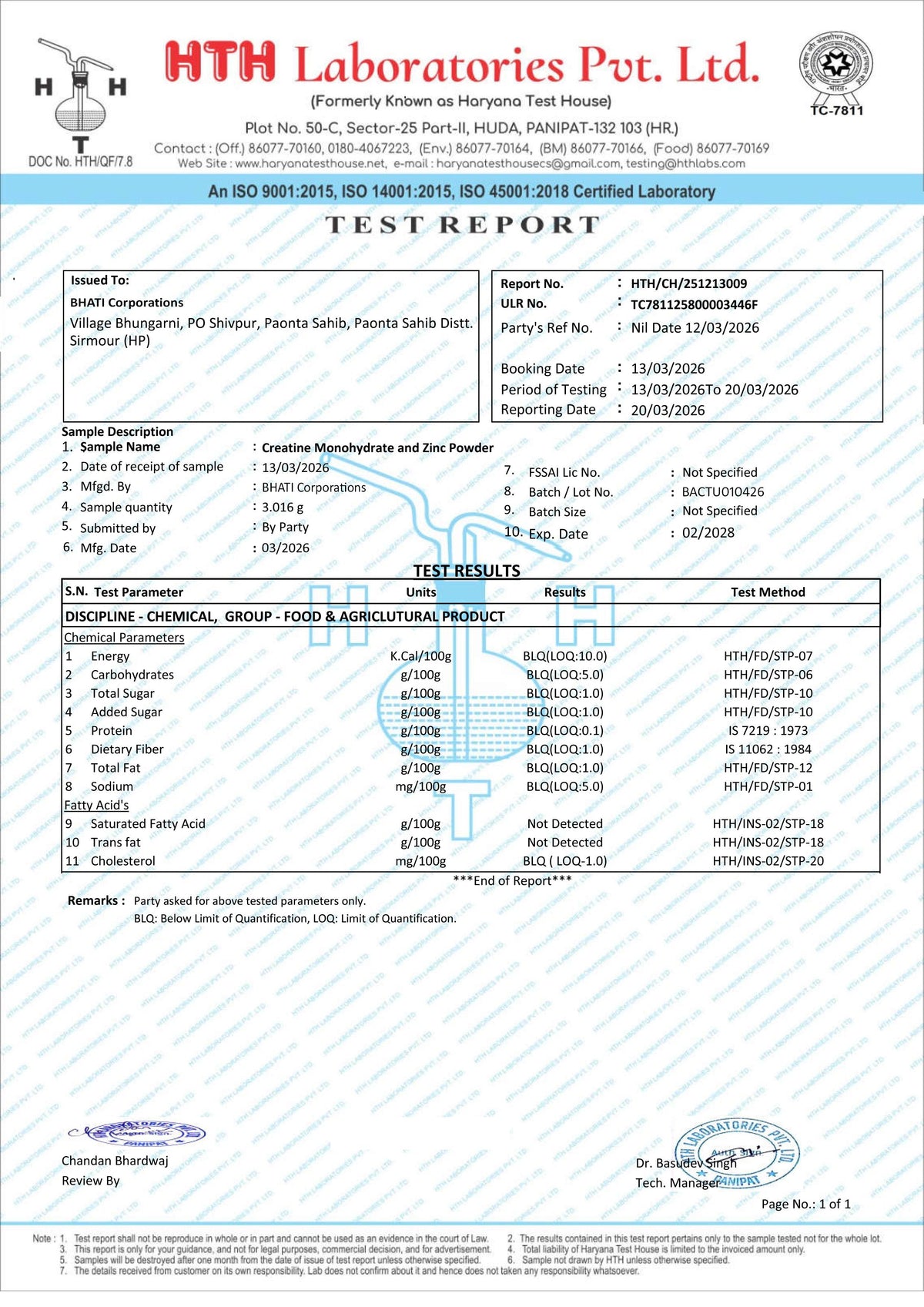 Authenticity Certificates (Creatine Monohydrate)